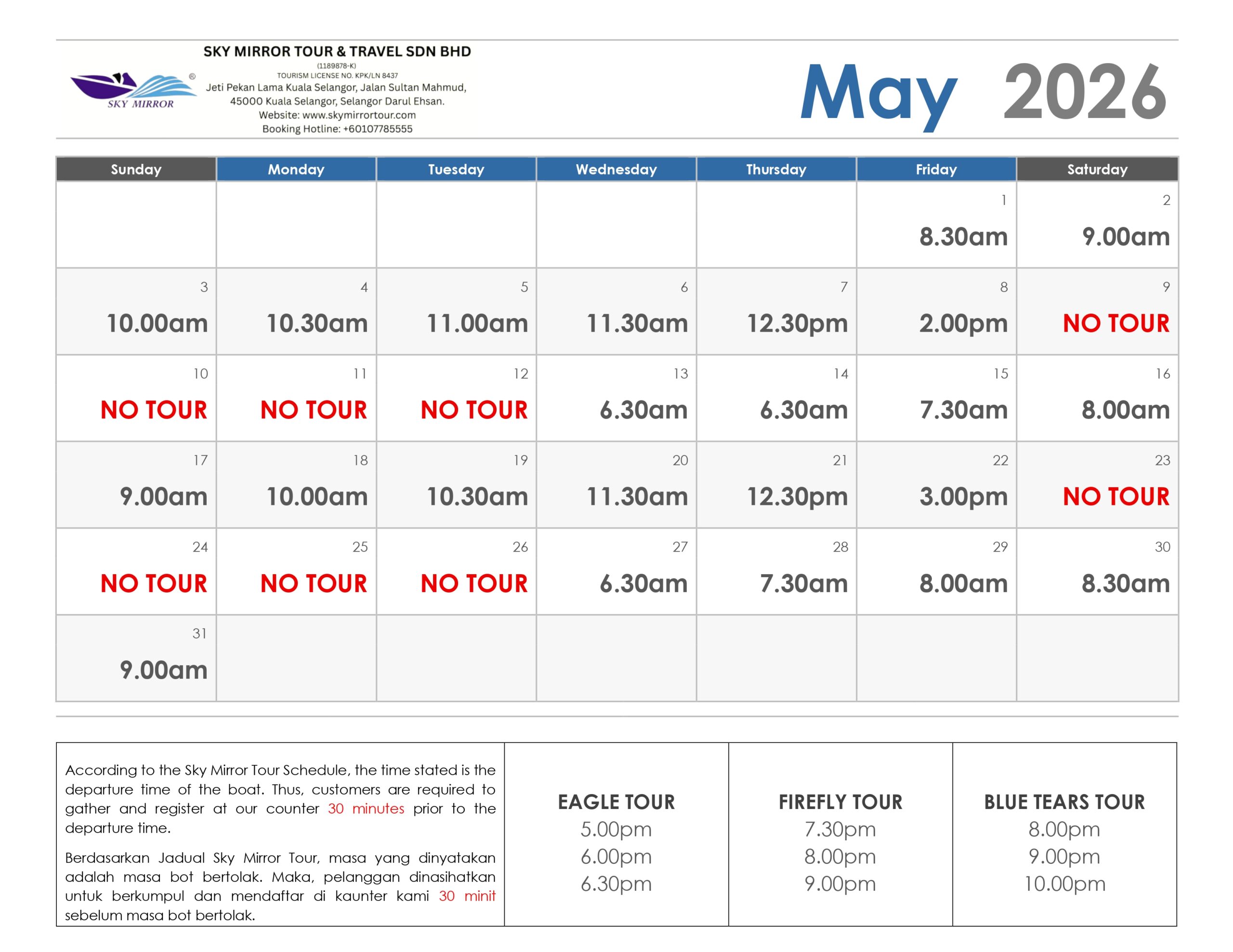 - Book with the official operator recognized by Malaysia’s Ministry of Tourism.