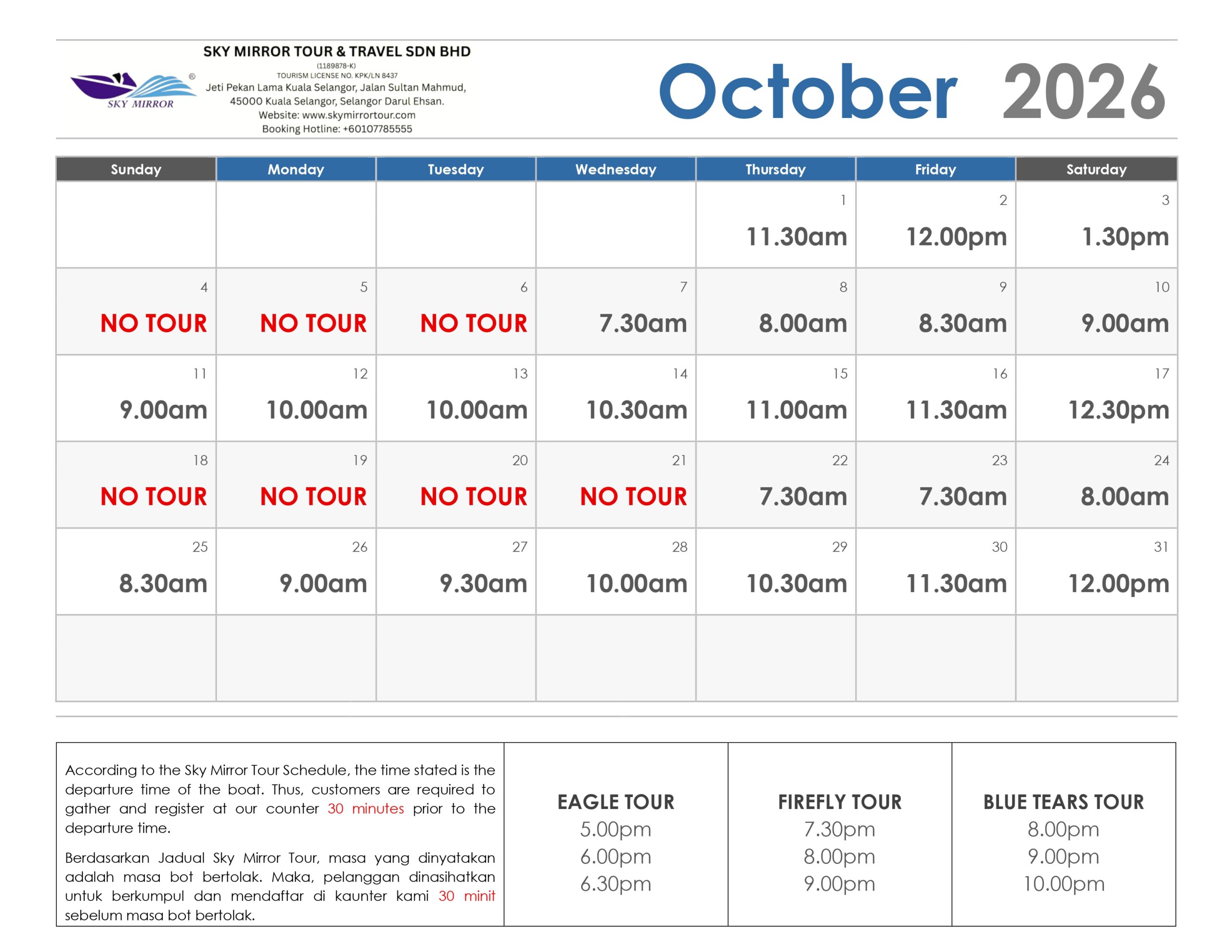 Sky Mirror Tour, Kuala Selangor – Oct 2026